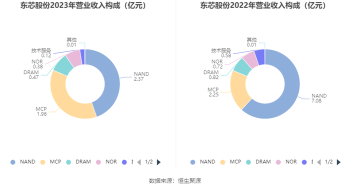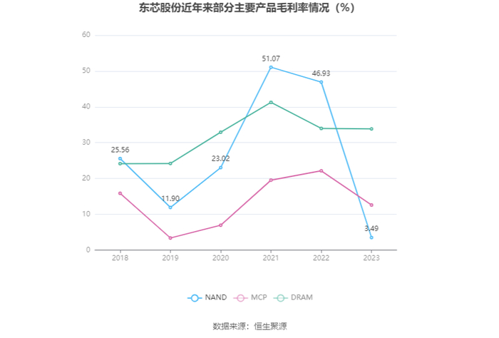 分产品看,NAND、MCP、DRAM2023年毛利率分别为3.49%、12.58%、33.84%。