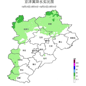 昨日10时到今日10时河北主要降水区域为张家口大部、承德大部,和西部山区一带;其中张家口西北部、承德北部和西部山区局地降水量在10毫米以上,其他均在10毫米以下。今天上午降水基本结束。