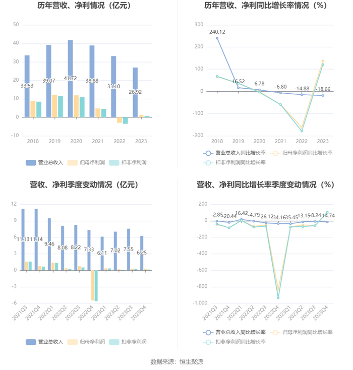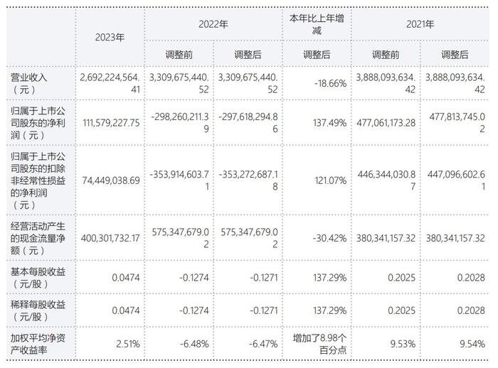数据显示,2023年公司加权平均净资产收益率为2.51%,较上年同期增长8.98个百分点;公司2023年投入资本回报率为1.80%,较上年同期增长8.35个百分点。