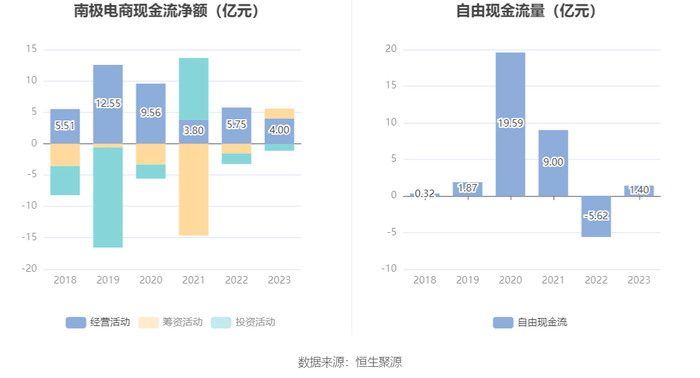 进一步统计发现,2023年公司自由现金流为1.40亿元,上年同期为-5.62亿元。