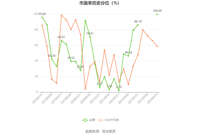 市盈率为负时,不显示当期分位数,会导致折线图中断。