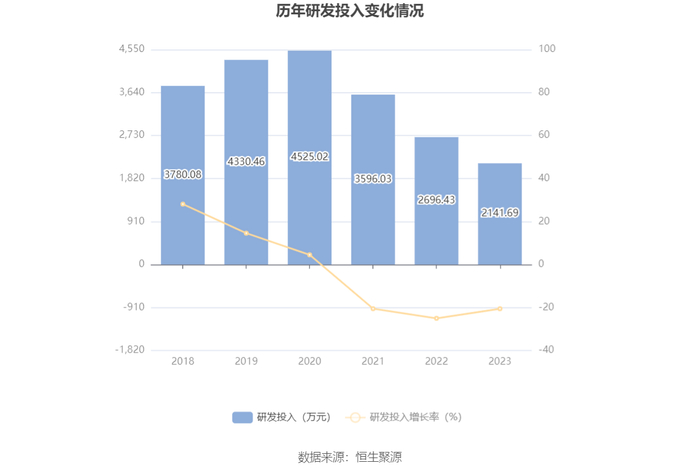 2023年全年,公司研发投入金额为2141.69万元,同比下降20.57%;研发投入占营业收入比例为0.80%,相比上年同期下降0.01个百分点。此外,公司全年研发投入资本化率为0。