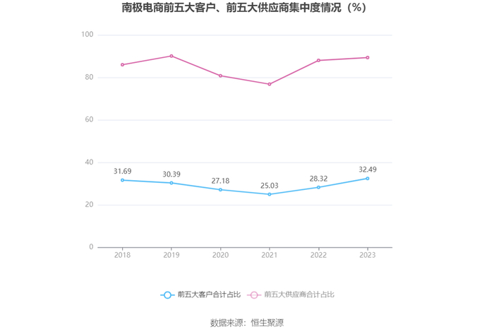 报告期内,公司前五大客户合计销售金额8.75亿元,占总销售金额比例为32.49%,公司前五名供应商合计采购金额21.29亿元,占年度采购总额比例为89.36%。