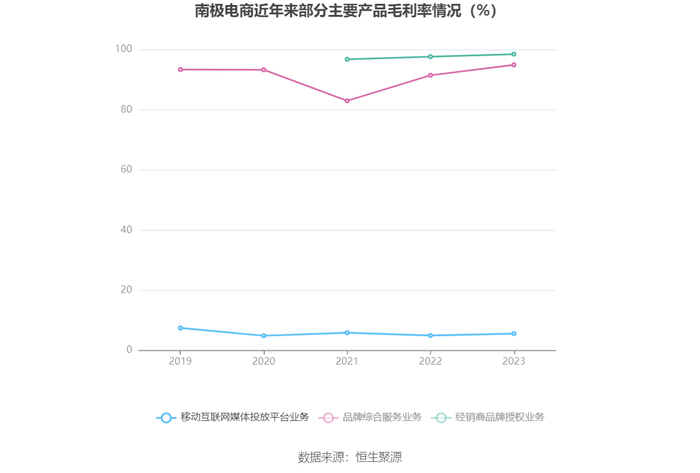 分产品看,移动互联网媒体投放平台业务、品牌综合服务业务、经销商品牌授权业务2023年毛利率分别为5.62%、94.90%、98.45%。