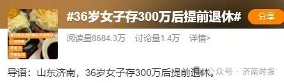 近日,“36岁女子存300万元后提前退休”相关话题在社交媒体引发关注。