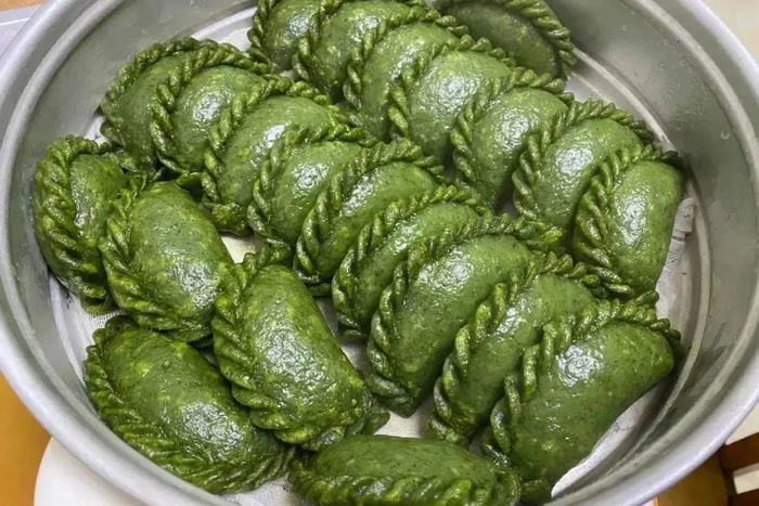 蒸好的清明果看上去油绿如玉