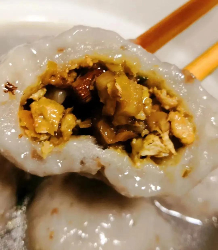 造型上尖下圆,食之外皮软糯Q弹