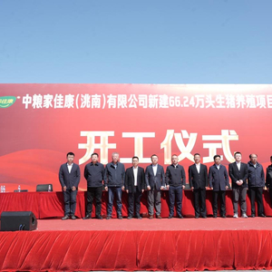 4月18日,中粮家佳康吉林洮南新建66.24万头绿色健康生猪养殖项目在吉林省西部洮南市开工。该项目一期共投资20.14亿元,将建设年出栏66.24万头生猪养殖基地及配套附属设施。项目总投资约100亿元,待全部建成投产后,将实现年出栏生猪300万头,带动种植、仓储、加工、包装、物流等上下游相关产业共同发展。
