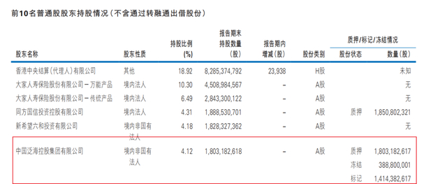 2023年10月9日晚间,民生银行公告披露该案一审判决结果,民生银行获赔超36亿元。然而,2023年财报显示,中国泛海控股集团有限公司所持有的民生银行股份全部处于质押状态,所以这里忍不住问一句,民生银行即便官司打赢了,但钱能要回来吗?