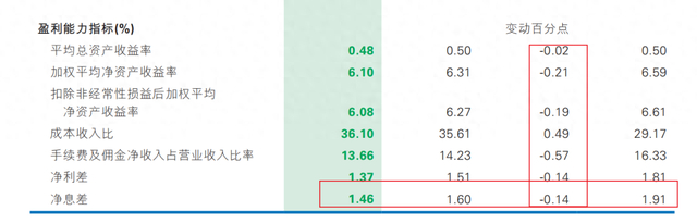 报告期内,该行净息差收窄至1.46%,同比下降14个基点。深蓝财经注意到,民生银行此前已经连续多个季度跌破1.8%。