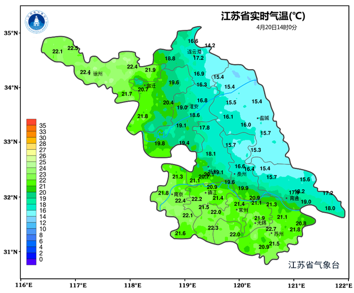 近1个月以来(2024年3月21日至4月18日),平均气温淮北地区15.2℃,江淮之间14.9℃,苏南地区16.4℃;与常年同期相比,淮北地区偏高2.7℃,江淮之间偏高2.5℃,苏南地区偏高2.9℃。
