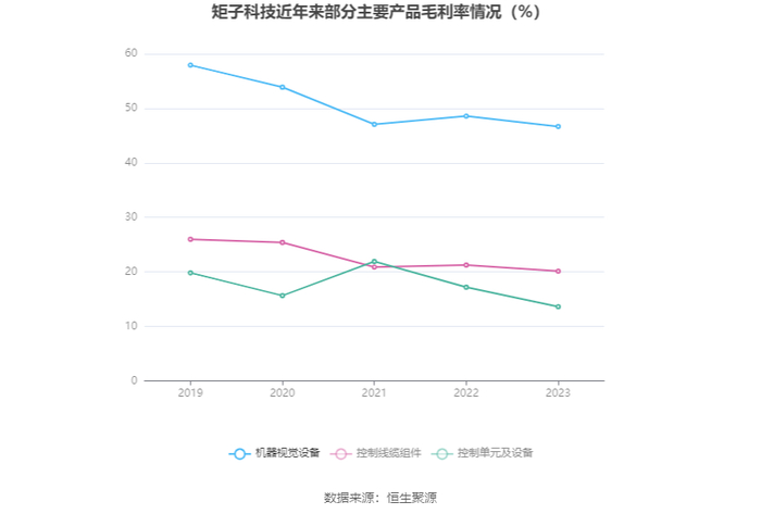 分产品看,机器视觉设备、控制线缆组件、控制单元及设备2023年毛利率分别为46.67%、20.13%、13.60%。
