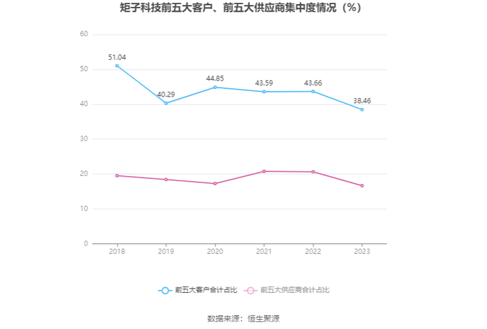 报告期内,公司前五大客户合计销售金额2.16亿元,占总销售金额比例为38.46%,公司前五名供应商合计采购金额0.49亿元,占年度采购总额比例为16.65%。