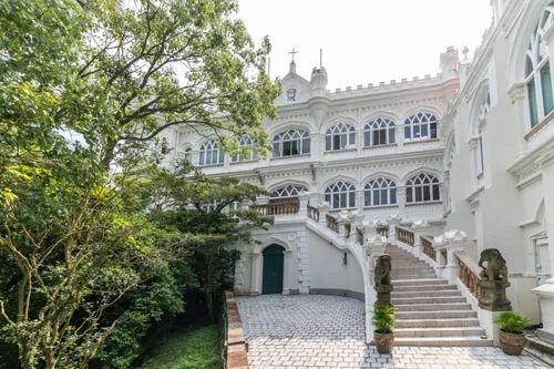 大学堂于1861年建成,是香港大学拥有的历史最悠久的建筑物。大学堂楼高三层,融合都铎和哥德建筑风格。一楼和二楼外部有都铎式拱门的柱廊、屋顶有矮墙、小尖塔及角楼;位于外部的花岗石主楼梯由地面通往宿舍一楼,楼梯口有一对神秘动物雕像,俗称为“四不像”,传说学生若触摸了四不像,考试便会不及格。大学堂外部于1995年被列为法定古迹。