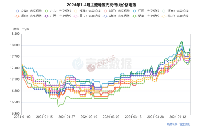 光亮铝线方面,目前全国主流地区光亮铝线价格在17500-17800元/吨之间,环比上周五基本变动不大,个别地区小跌100元;上周价格过高,企业对铝线收货折扣出现下调,在本周价格高位回落情况下,企业收货折扣小幅上调,导致铝线、1-6系边角料价格实际跌幅受限;但据了解,华东地区铝亮线价格仍未到达3月份的折率,目前光亮铝线价格多在88-89折之间,距离91-92折仍有差距。