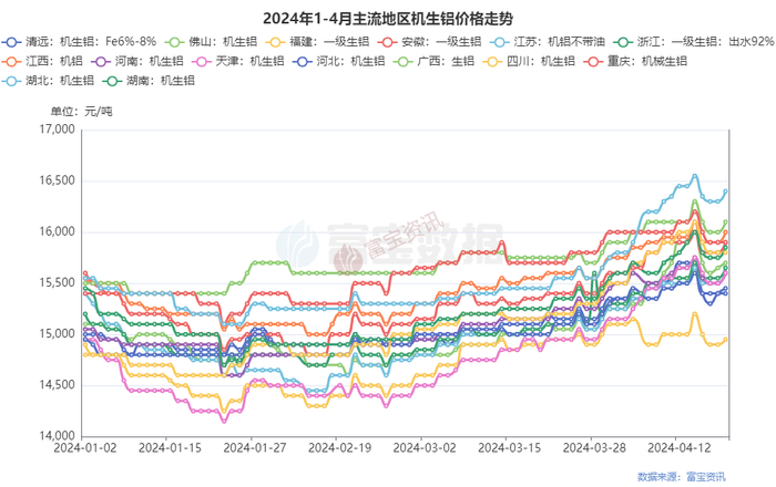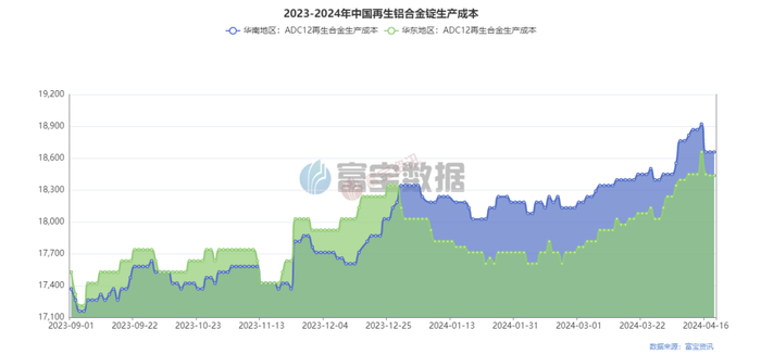 据富宝有色统计,截止2024年4月19日,中国再生铝合金锭利润均值录得-73.9元/吨,较上周小幅回暖32.6元/吨;国内ADC12铝合金锭价格指数为20000元/吨(含税),较上周均价下降200元/吨;破碎生铝价格指数录得16500元/吨,较上周下跌100元/吨。