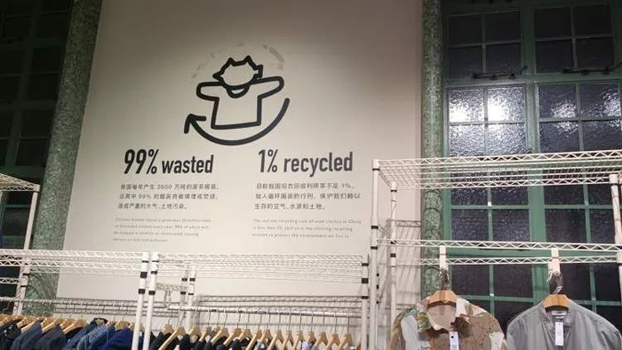 “目前,我国旧衣回收利用率不足1%,加入循环服装的行列,保护我们赖以生存的空气、水源和土地。”