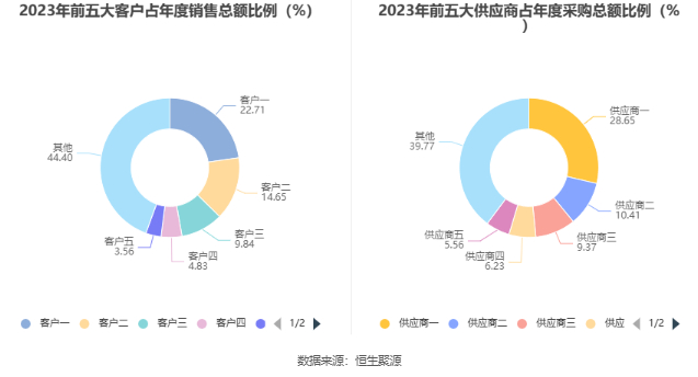 报告期内,公司前五大客户合计销售金额7.42亿元,占总销售金额比例为55.60%,公司前五名供应商合计采购金额14.45亿元,占年度采购总额比例为60.23%。