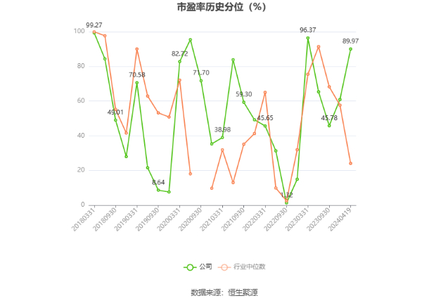 市盈率为负时,不显示当期分位数,会导致折线图中断。
