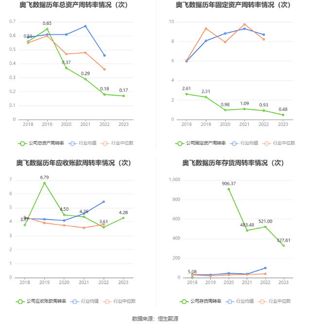 数据统计显示,奥飞数据近三年营业总收入复合增长率为16.67%,在通信应用增值服务行业已披露2023年数据的7家公司中排名第5。近三年净利润复合年增长率为-3.36%,排名4/7。