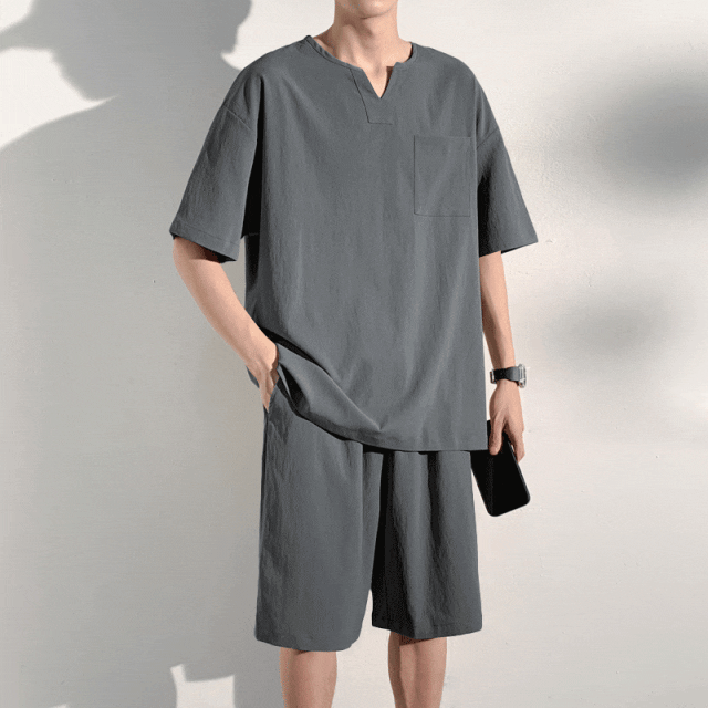 设计上!日系无印良品的风格,简约又有型,让你全身解放忬适,甚至还配有一套的短裤,穿着贼帅