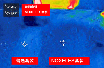 为此我们还将它和普通休闲套装进行了对比,大家可以清晰的看到,在热成像下我们这款套装的温度要更低