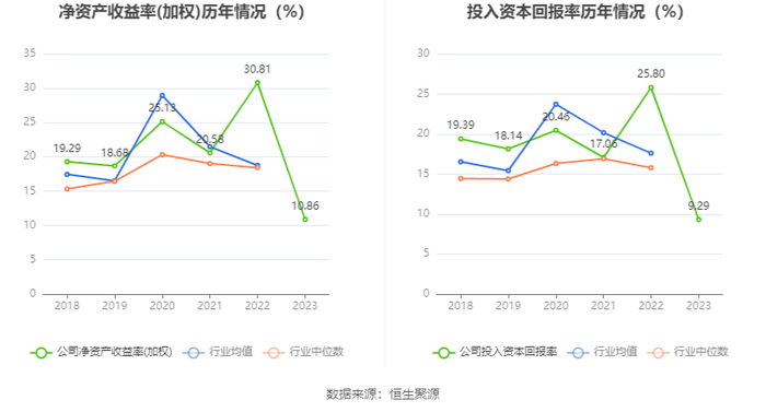 数据显示,2023年公司加权平均净资产收益率为10.86%,较上年同期下降19.95个百分点;公司2023年投入资本回报率为9.29%,较上年同期下降16.51个百分点。