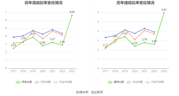 2023年,公司流动比率为6.68,速动比率为5.95。