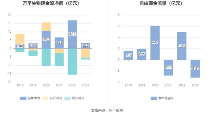 进一步统计发现,2023年公司自由现金流为-3.21亿元,上年同期为4.94亿元。
