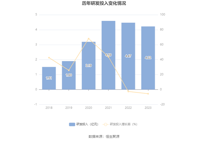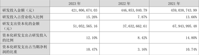 2023年全年,公司研发投入金额为4.22亿元,同比下降5.61%;研发投入占营业收入比例为15.26%,相比上年同期上升7.39个百分点。此外,公司全年研发投入资本化率为12.10%。