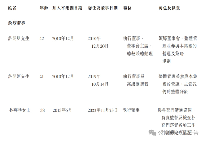 公司共计三位执行董事,无非执行董事,许开明博士为董事长、执行董事兼总经理。