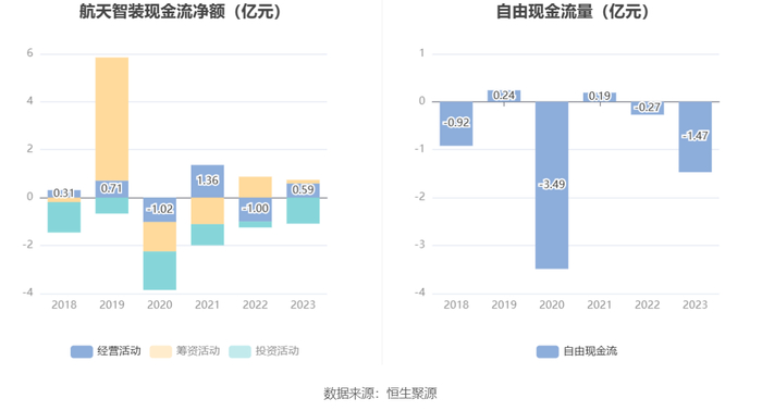 进一步统计发现,2023年公司自由现金流为-1.47亿元,上年同期为-0.27亿元。