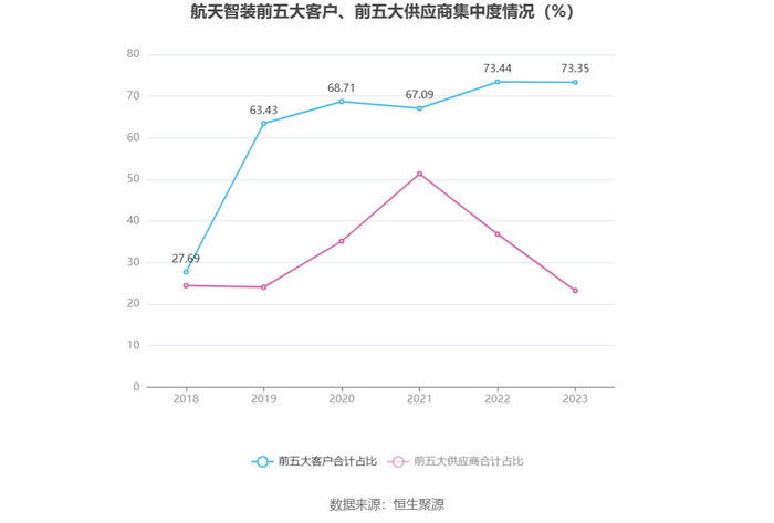 报告期内,公司前五大客户合计销售金额10.33亿元,占总销售金额比例为73.35%,公司前五名供应商合计采购金额1.79亿元,占年度采购总额比例为23.23%。
