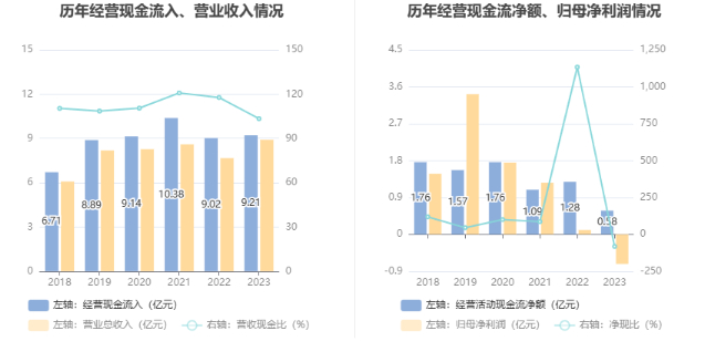 2023年,公司营业收入现金比为103.40%,净现比为-81.47%。