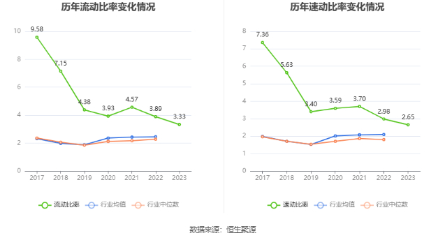 2023年,公司流动比率为3.33,速动比率为2.65。