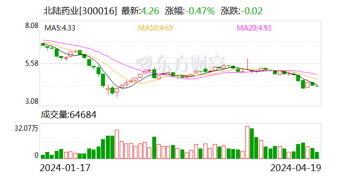 以4月19日收盘价计算,北陆药业目前市盈率(TTM)约为-29.2倍,市净率(LF)约为1.27倍,市销率(TTM)约为2.35倍。