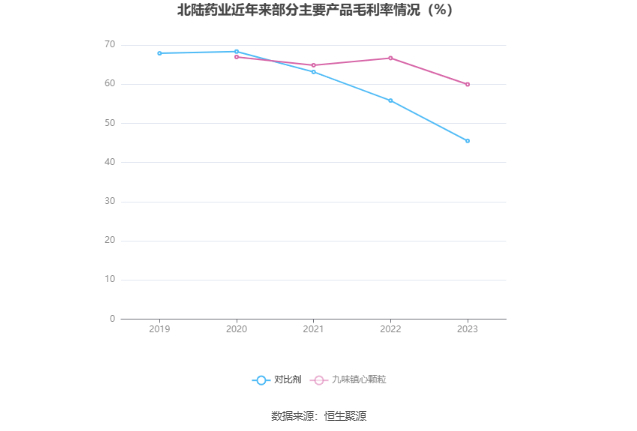 分产品看,对比剂、九味镇心颗粒、降糖药2023年毛利率分别为45.51%、59.95%、57.90%。