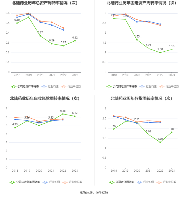 营运能力方面,2023年,公司公司总资产周转率为0.32次,上年同期为0.27次(2022年行业平均值为0.43次,公司位居同行业88/112);固定资产周转率为1.16次,上年同期为1.00次(2022年行业平均值为2.45次,公司位居同行业95/112);公司应收账款周转率、存货周转率分别为6.12次、1.81次。
