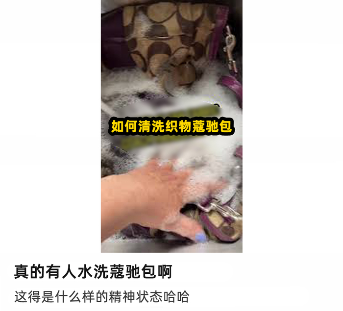 甚至有人清理蔻驰包的方式,是把它泡在搪瓷盆里,用鞋刷子来擦。