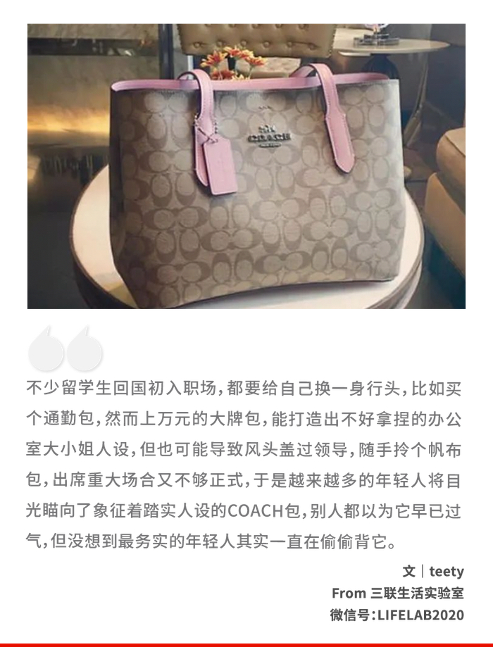 但如今,蔻驰包却成了年轻人自我判断职场成熟度的量化表。