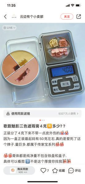 用户“找我买正品店”发了多条KRYOLAN歌剧魅影遮瑕分装的笔记,点开笔记可以进入店铺购买。其中,中国限定三色1.2克,送一支遮瑕刷,仅需要9.9元包邮。用户“云边有个小卖部o”同样在售卖KRYOLAN歌剧魅影中国三色遮瑕盘分装产品,在其小红书店铺内,中国三色4克到手价为20元,5克到手价为30元,均包邮。