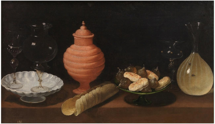 胡安·范·德·哈曼-莱昂,《甜品和玻璃容器静物》,1622年,布面油画,来自王室收藏,普拉多国家博物馆馆藏