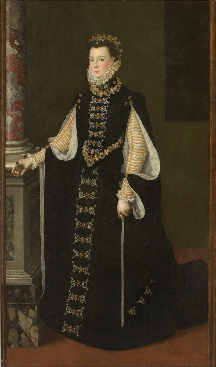 索福尼斯巴·安圭索拉,《伊丽莎白·德·瓦卢瓦手握费利佩二世肖像》,1561-1565年,布面油画,来自王室收藏,普拉多国家博物馆馆藏