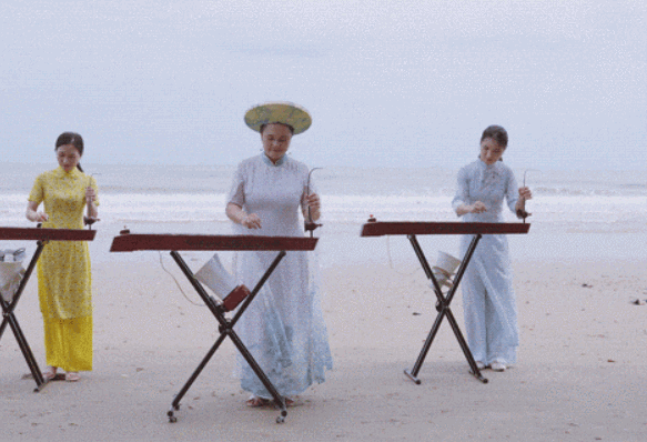 放眼整体,服饰搭配依稀散发着中国旗袍的气韵,原来京族服饰的领子形似旗袍领,但肩袖处做成“斜肩”以示区分,下身还搭配一条裤子,如此一看,既集结汉服的流畅飘逸,又糅合了旗袍的优雅高贵,京族人民是懂“集大成”的。