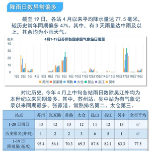 预计5月1日至5月20日降水量淮北地区和江淮之间较常年偏少0~2成,苏南地区较常年偏多0~2成。