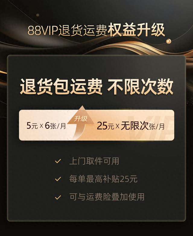 退货包运费 淘宝天猫88VIP会员权益再升级