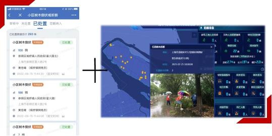 台风暴雨等应急响应期间,使用手机政务微信灾情直报应用进行防御和灾情数据上报,比起以往微信表格汇总统计,更加快捷、直观,最新数据也会实时在大屏前端显示。