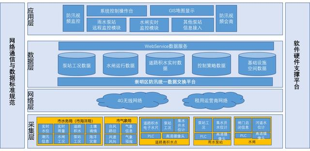 基于崇明区政务外网和市水务局专网进行联通整合,确保市局到水务局、城运中心、局属相关单位、各乡镇网络互通,以便传输数据流和视频流。