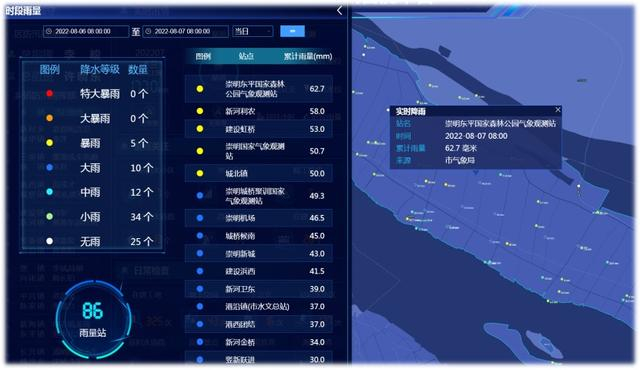 崇明区防汛智能平台深入聚焦城市治理数字化转型,加大纵向横向数据共享,围绕“一块屏、一张网、一盘棋”为功能向导,构建一张防汛数字化感知网、架设防汛数据主题库,基于崇明三岛GIS图层迭代开发水情监测、积水处置、视频监控等功能应用,为防御“烟花”“灿都”“杜苏芮”等多个台风以及数轮暴雨提供科技赋能支撑。