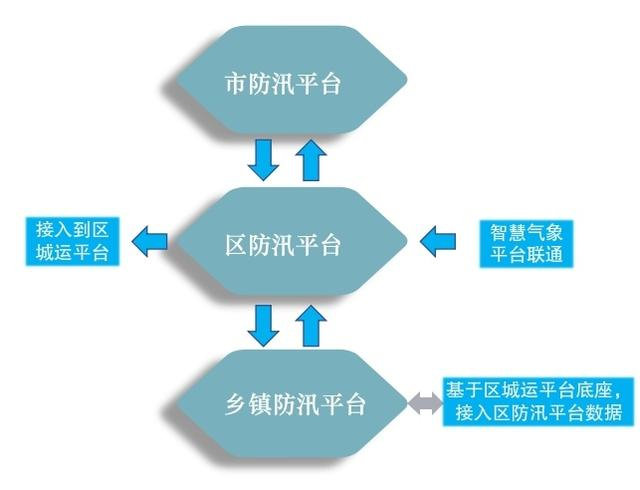 纵向上:形成三级平台的逻辑架构,打通了市、区、乡镇三级平台,努力实现防汛工作“一竿子到底”。